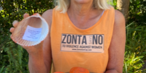 Through its Service & Advocacy team, the Zonta Club of Sanibel-Captiva is placing shells painted orange—the theme color of the campaign—in public places on Sanibel, labeled with the number for the national domestic violence hotline, 1-800-799-SAFE (7233). You may find one in a parking lot, on a bench at a shopping center, on the causeway islands or even on the beach. And if you know someone who might need help, pick up the shell and pass it on.